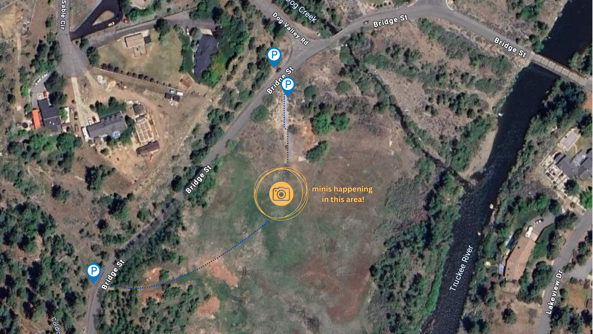 I’ve circled a few small turnouts along Bridge St on the map where you can park. We’ll be shooting mainly in the spot circled on the map — it’s easy to find once you arrive!